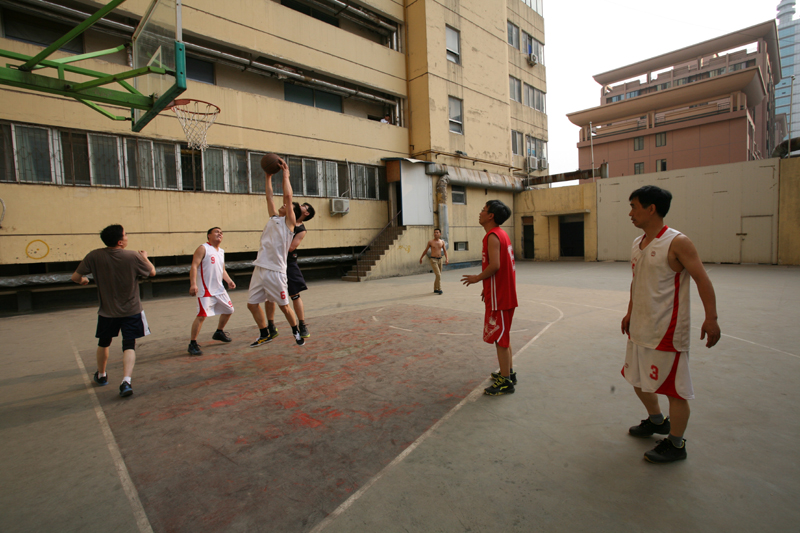 圖片說明:籃球興趣小組同新華社河南分社球隊(duì)進(jìn)行籃球友誼賽。