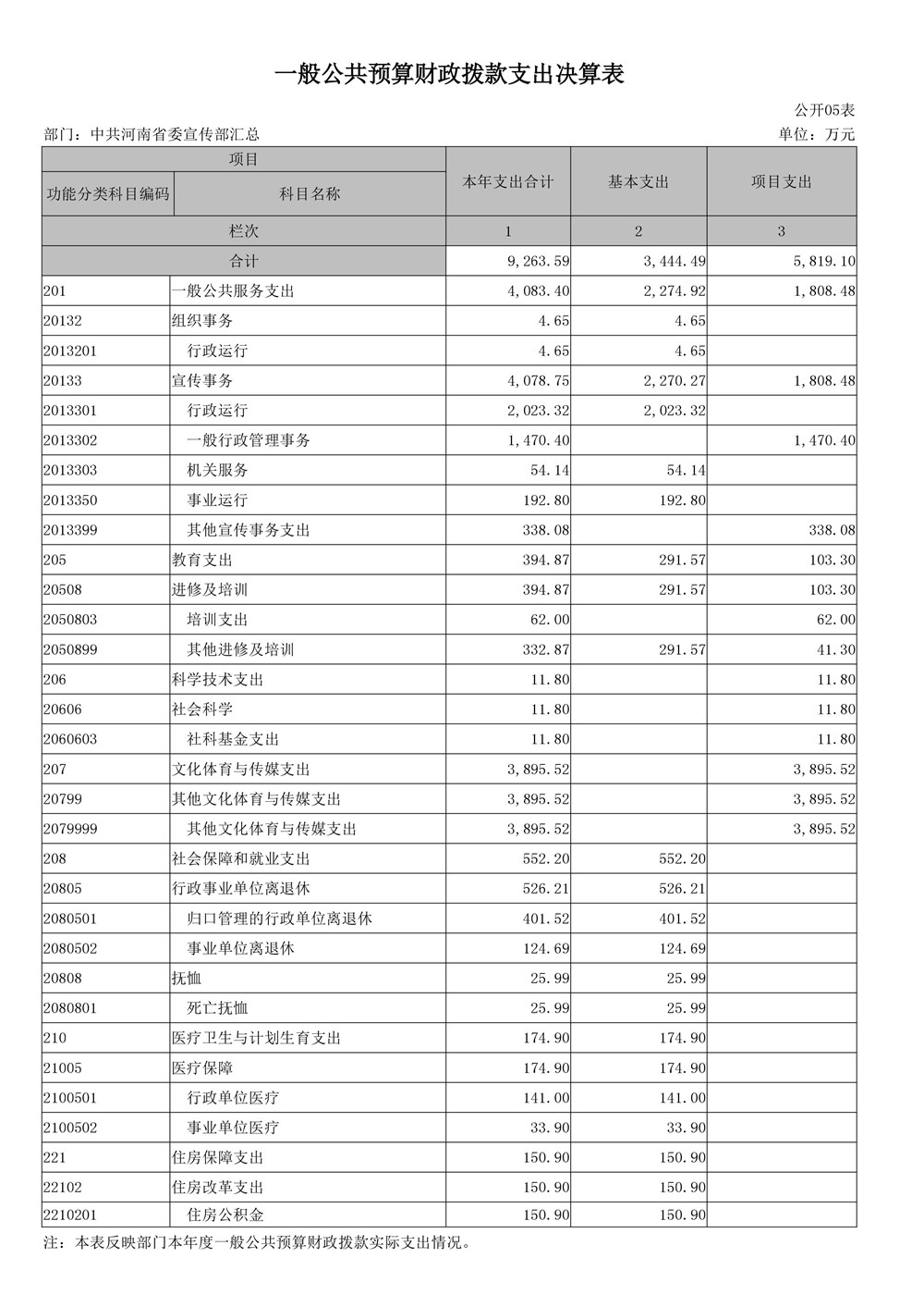 2016年度河南省委宣傳部部門決算公開