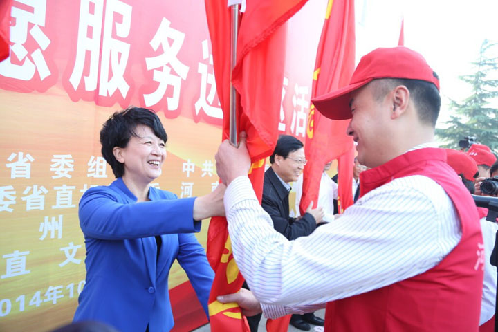 趙部長向志愿服務(wù)單位授旗